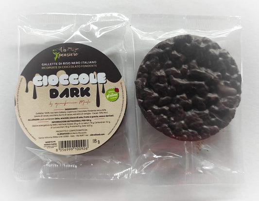 Cioccole Dark - Galletta di Riso Nero Italiano ricoperta di Cioccolato Fondente.